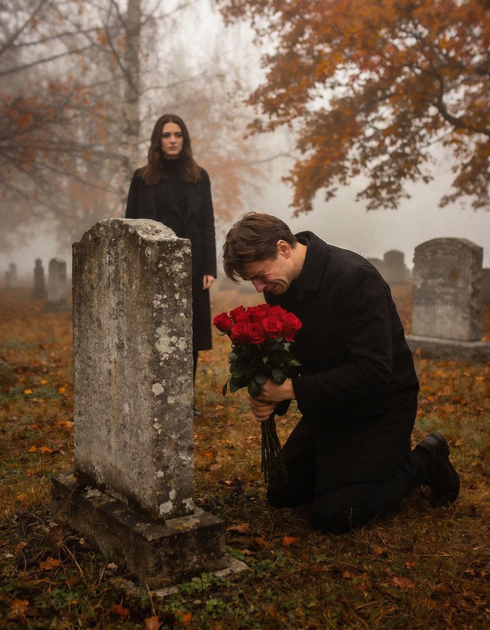 Au stat acolo, de o parte și de alta a mormântului, ca doi oameni din lumi diferite, dar conectați prin același nume sculptat în piatră.