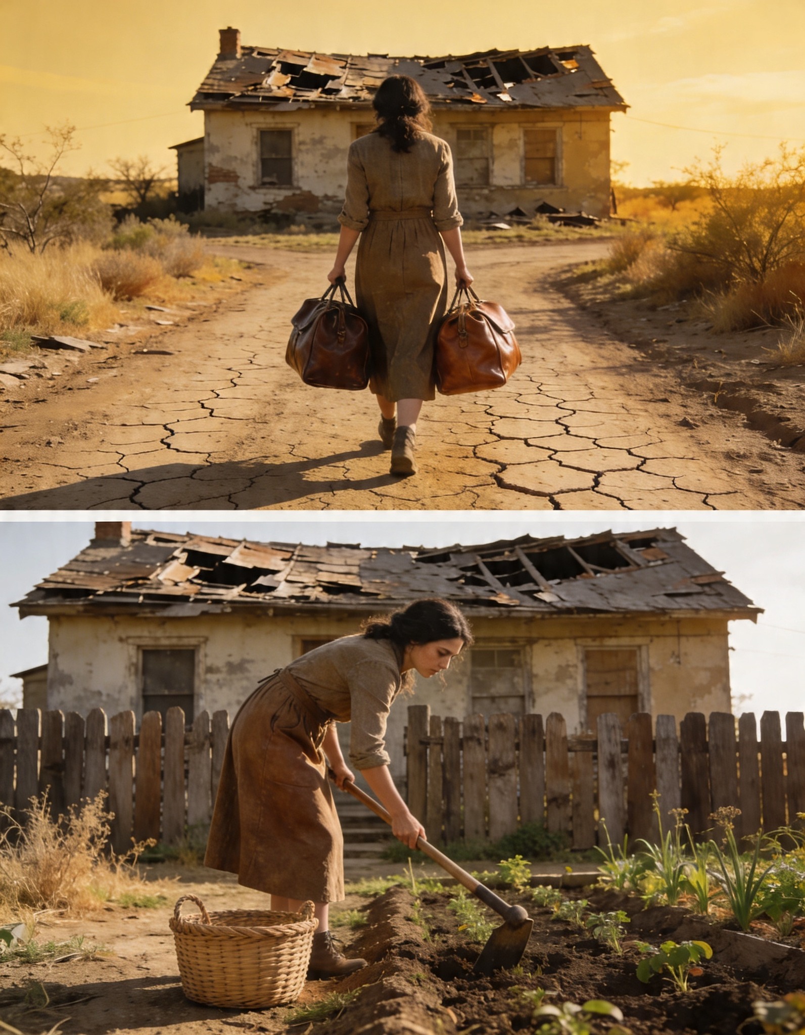 Pământ crăpat. Buruieni uscate până la genunchi. Câțiva copaci bătrâni, strâmbi, de parcă ar fi vrut să-i lase în urmă. Fără fântână. Fără gard.