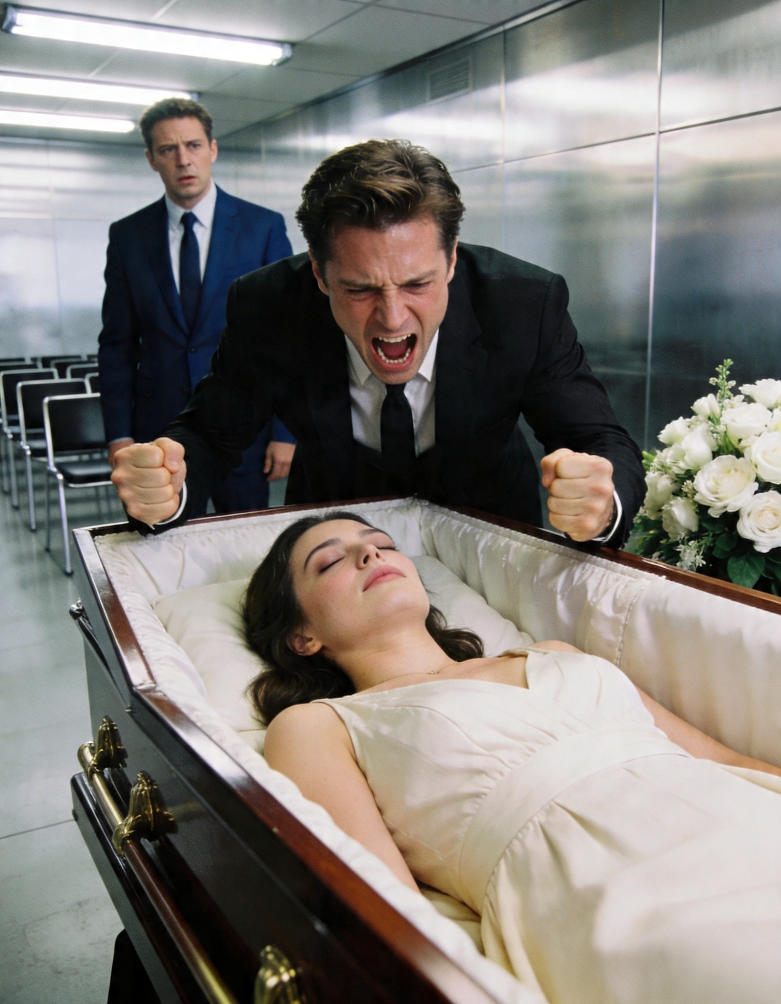Un muncitor, cu mâinile tremurânde, și-a scos telefonul. Altul a început să explice în grabă numărul de urgență 112. După câteva minute, sirenele au spart liniștea grea a crematoriului.